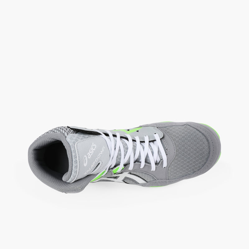 The SNAPDOWN™ 3 wrestling shoe is designed for middle school and intermediate wrestling competitors. A reliable wrestling style that's built to stand up to the rigorous demands throughout the season, this shoe is constructed with stitch down overlays and mesh underlays that deliver advanced airflow to help feet breathe during matches. The kimono tongue inspiration provides a better foothold and an improved fit, while the shoelace garage assists in keeping laces tied and concealed. The design of the outsole encourages better traction on mat surfaces, featuring a unique pattern that implements a series of circular shapes that are made to improve grip when the foot is planted.