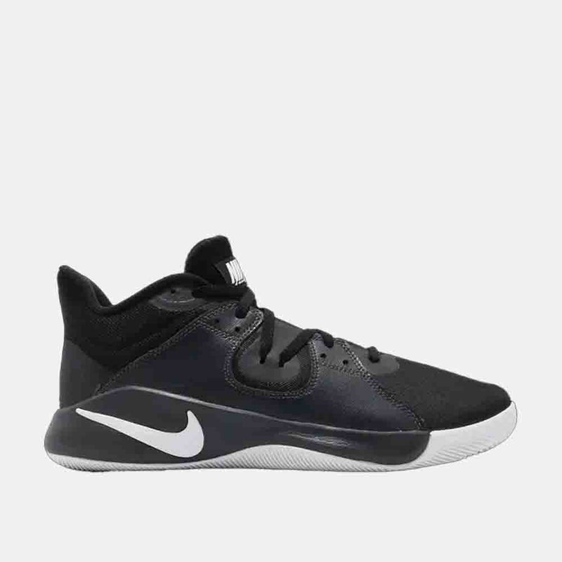 The Fly.By Mid ‘Smoke Grey’ applies a minimalist color scheme to a lightweight basketball shoe with court-ready cushioning and traction. The mid-top’s black mesh upper is fortified with a matching leather overlay for midfoot support, while a breathable mesh tongue works in tandem with a foam-lined collar for a comfortable fit around the ankle. It all rides on a resilient foam midsole, reinforced underfoot by a wavy-tread rubber outsole.
